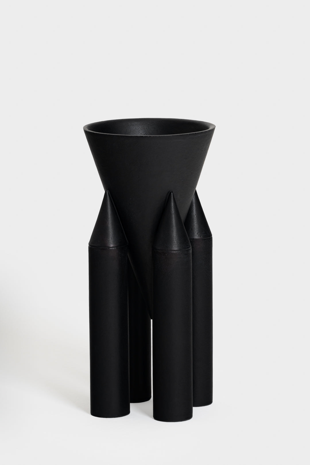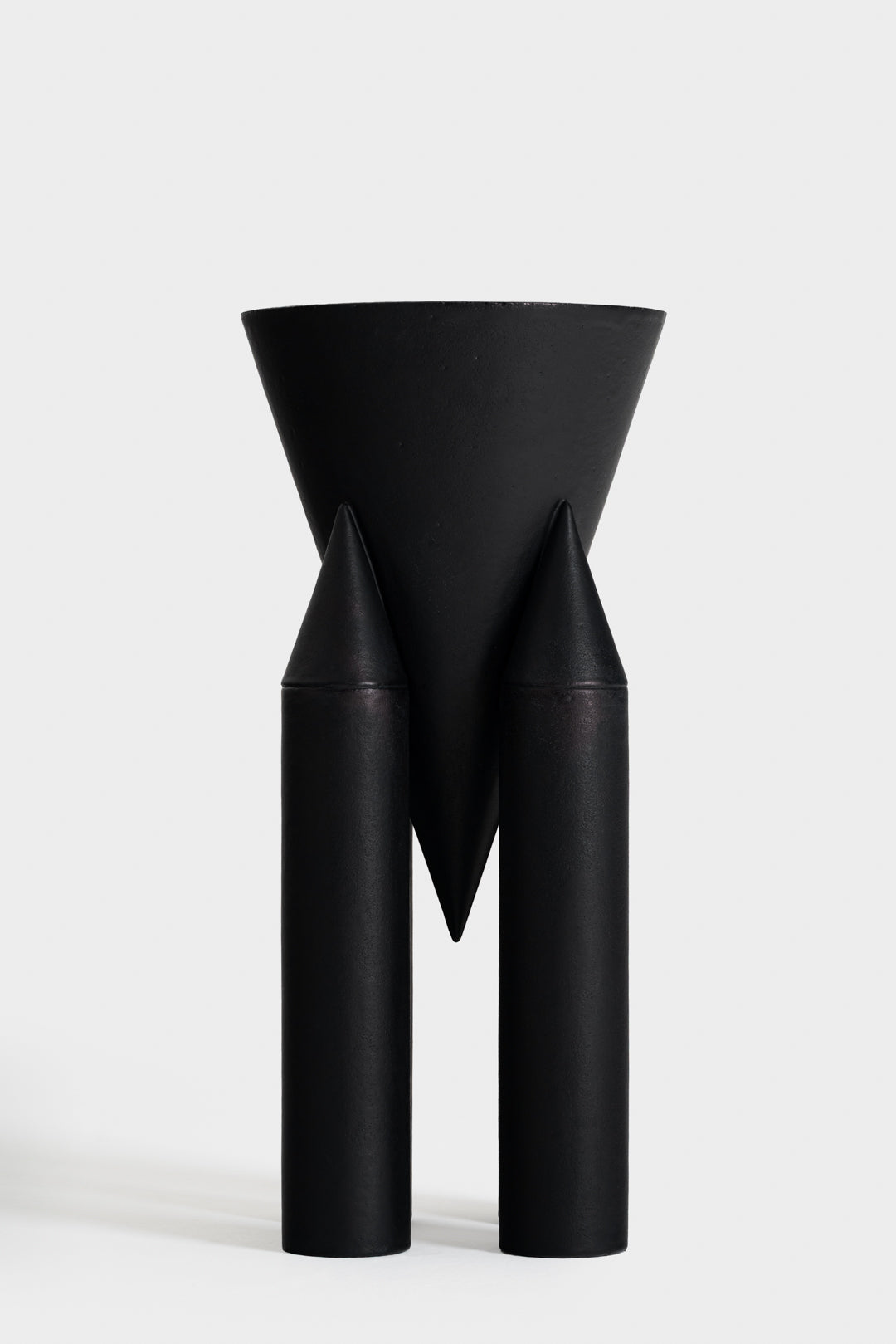 Joy Herro’s planter looks ready to take flight. It’s black, heavy, and sharp, like something built for war but it holds a green plant, soft and alive. It’s as if the plant is caught between two worlds: one that wants to grow and one that wants to escape. The rocket legs say, “Maybe we’ll leave the damaged world,” but the plant says, “Maybe we can still stay.” It’s a dark joke about our times, trying to care for nature while everything around us feels like it’s falling apart.