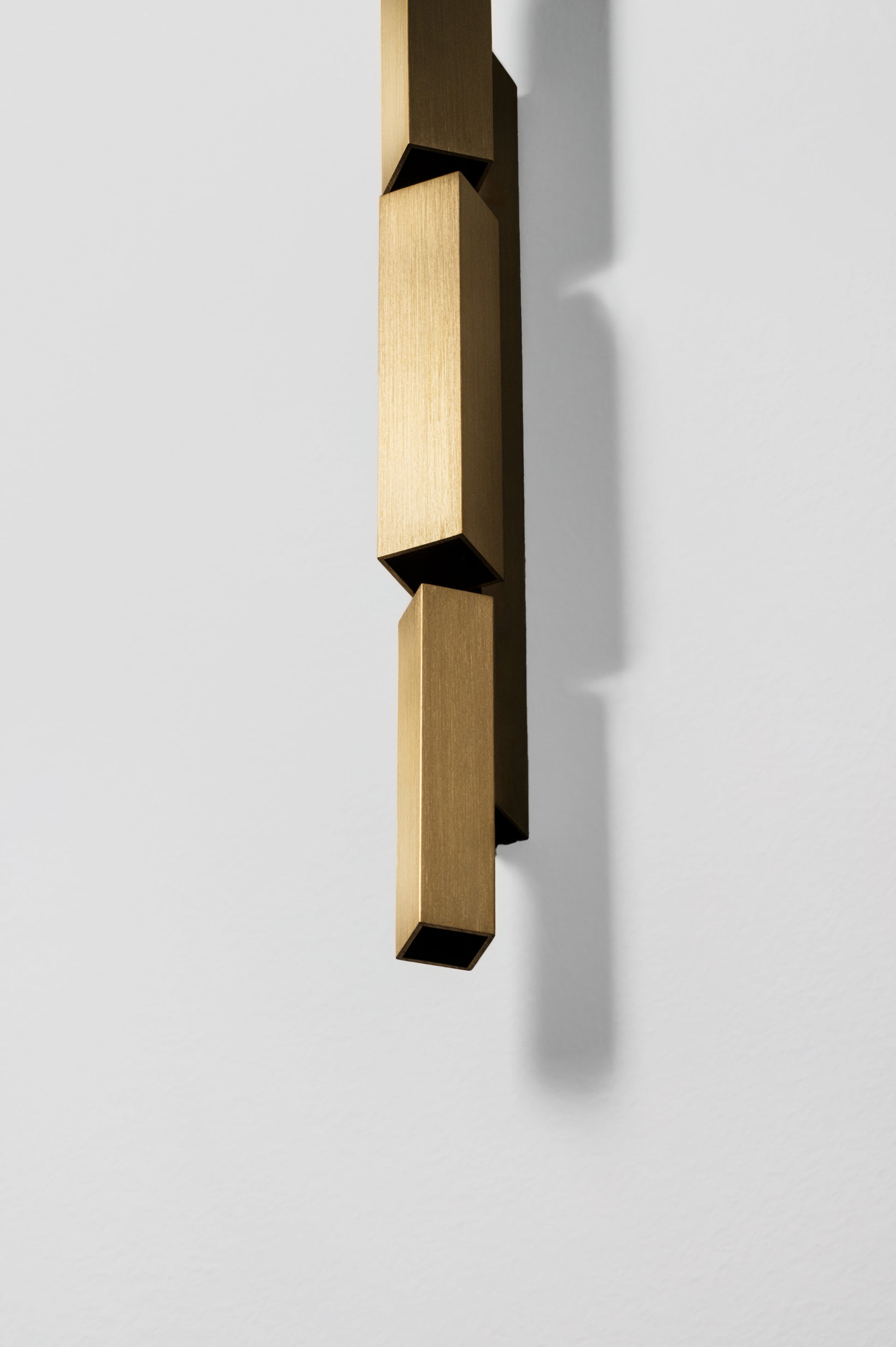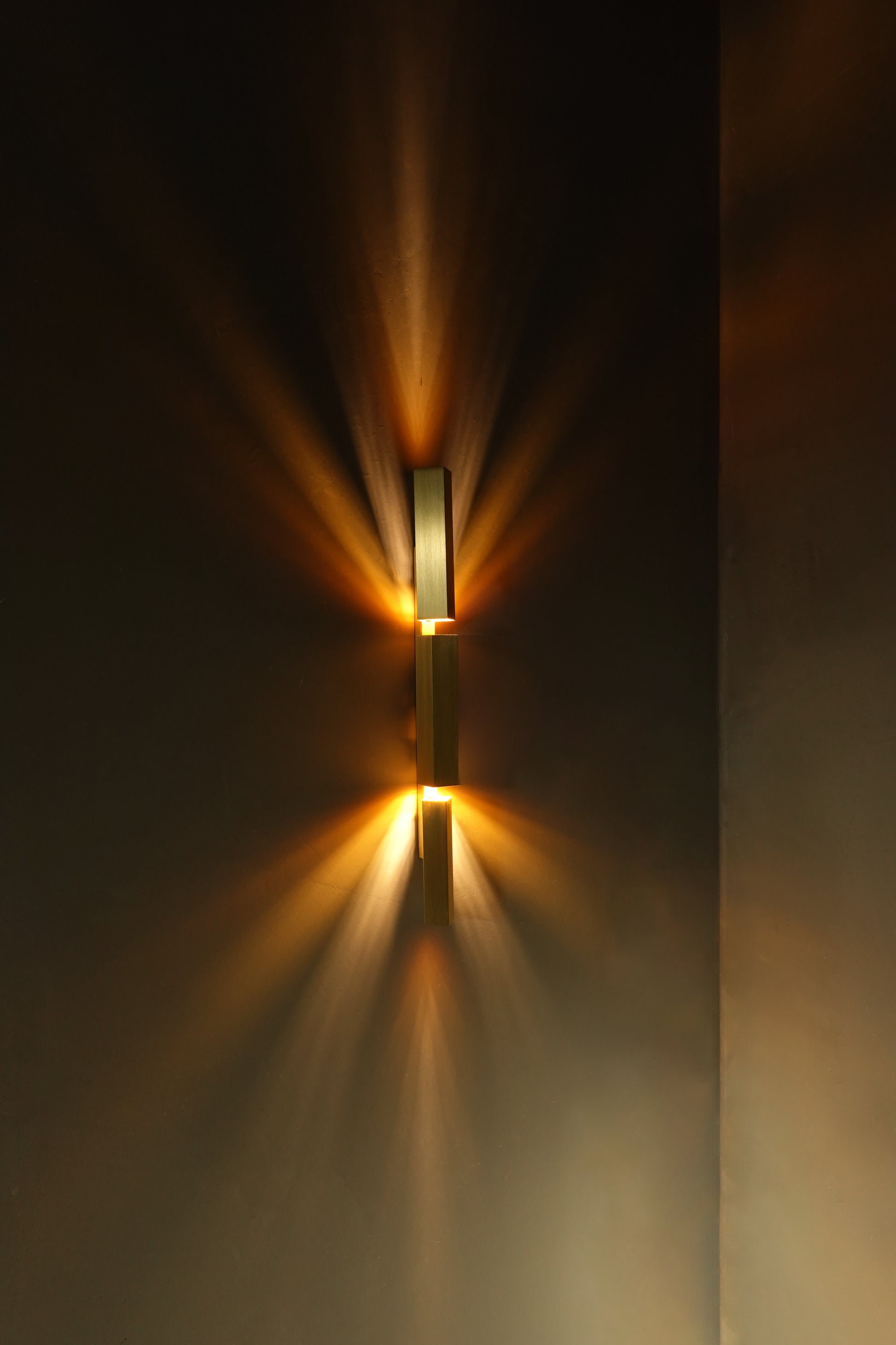The result is a light painting, in which the decorative patterns embrace a space that goes far beyond the physical presence of the sconce.
